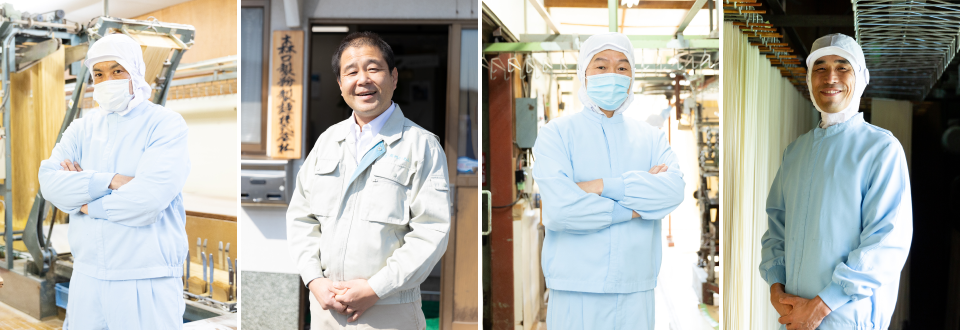 Since we are a small local manufacturer, we work while helping each other while having a family-like atmosphere. The production staff of the factory participates in the product development meeting, the office staff helps the factory during the busy season, and everyone makes dried noodles to be delivered to customers.