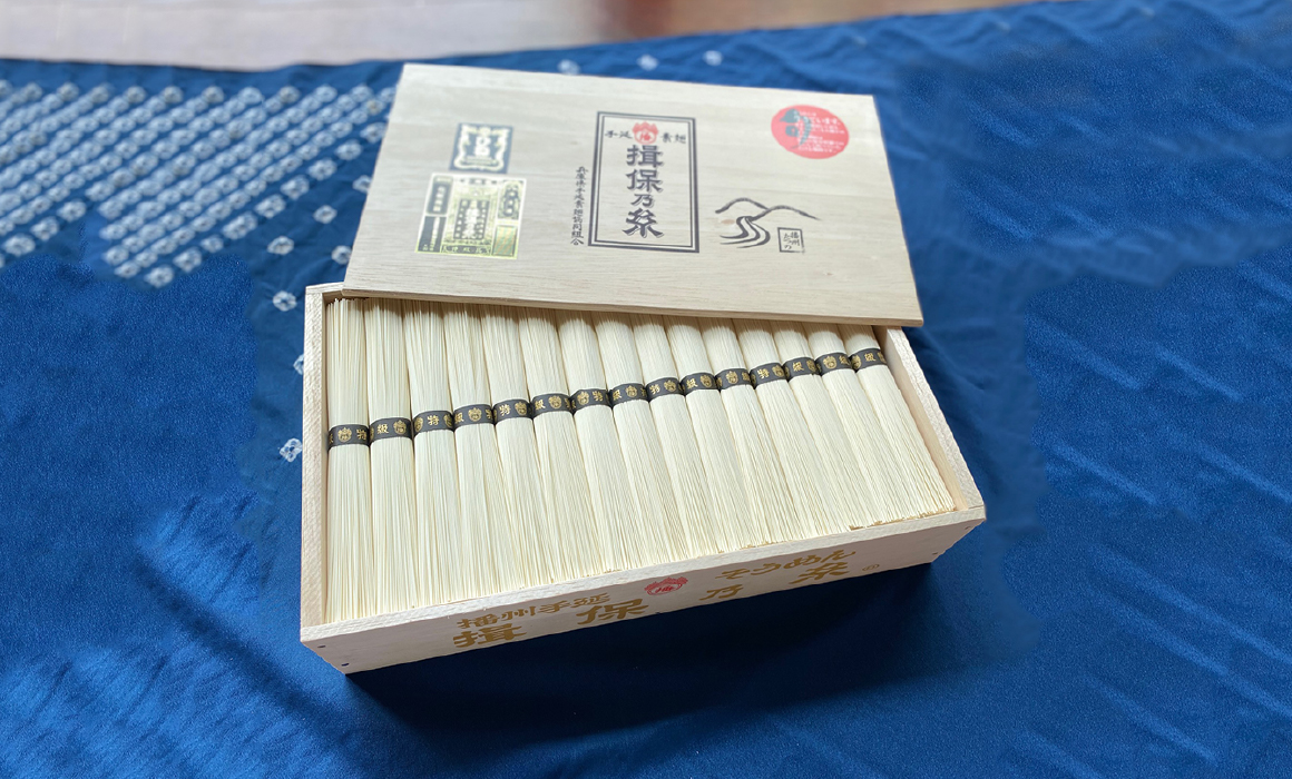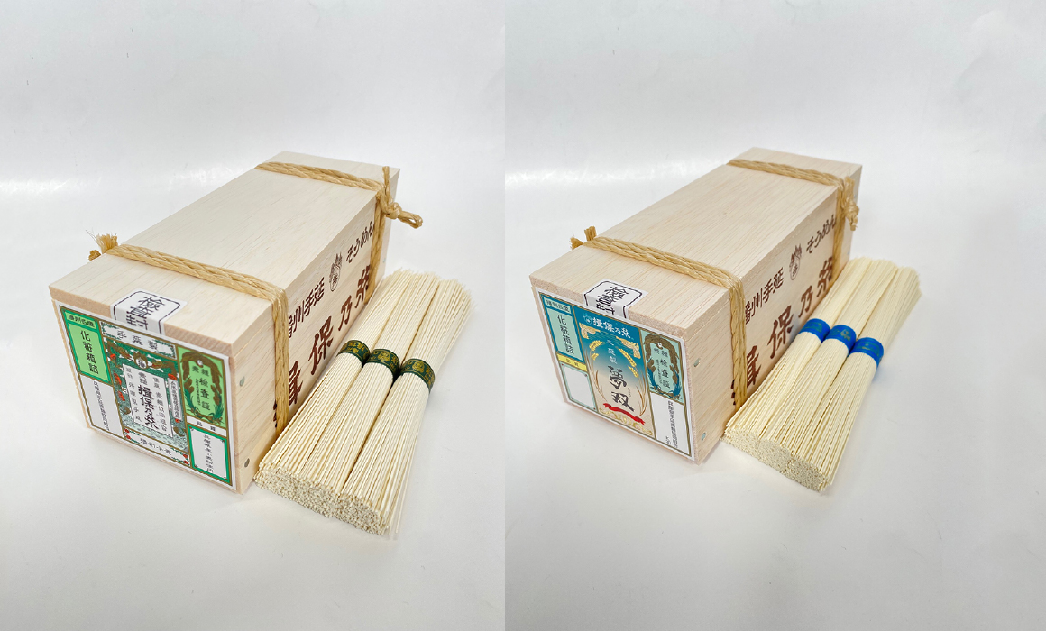 Ibonoito is an assortment of somen noodles with a green band called "Banshu Komugi" made from Hyogo prefecture wheat and mentsuyu.