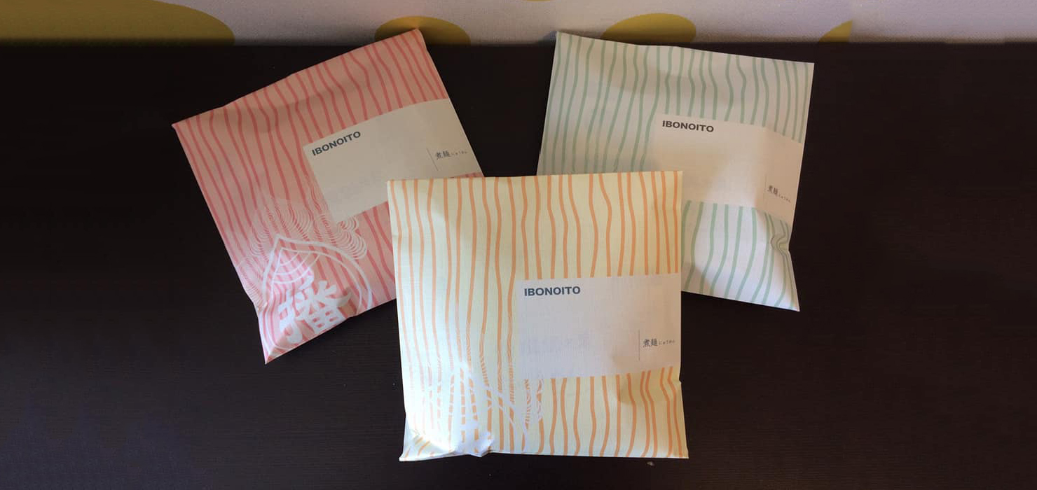 かわいらしいパッケージと、手土産に人気の揖保乃糸です。