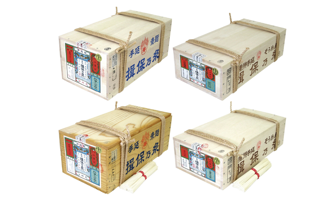 揖保乃糸の黒帯特級・赤帯上級をはじめ、夢双(贈答限定商品)、手延ひやむぎ、揖保乃糸のうどん「宝播うどん」、揖保乃糸の中華麺「龍の夢」、揖保乃糸のパスタ「龍の夢PASTA」、そうめんバチなどラインナップは豊富です。